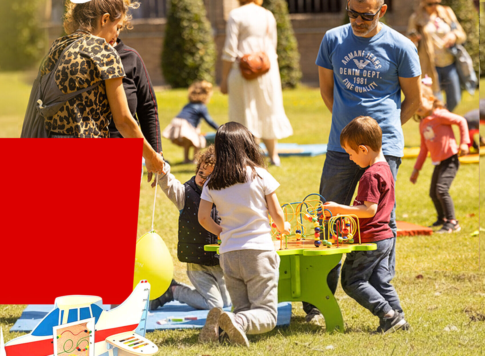 Espai segur i tranquil on nens, pares i mares experimenten junts: moure’s lliurement, tocar, explorar amb música, tallers i zones d’aprenentatge.