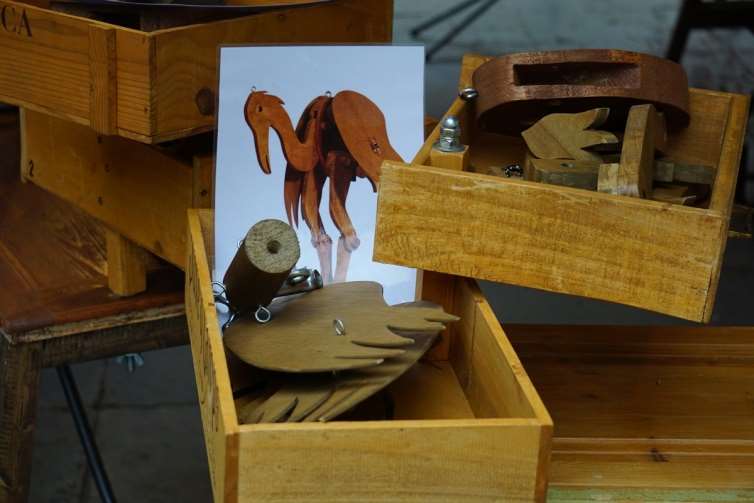 Dins de calaixos trobaran les peces de fusta i, amb suports de ferro i cargols de fusta, muntaran el titella.