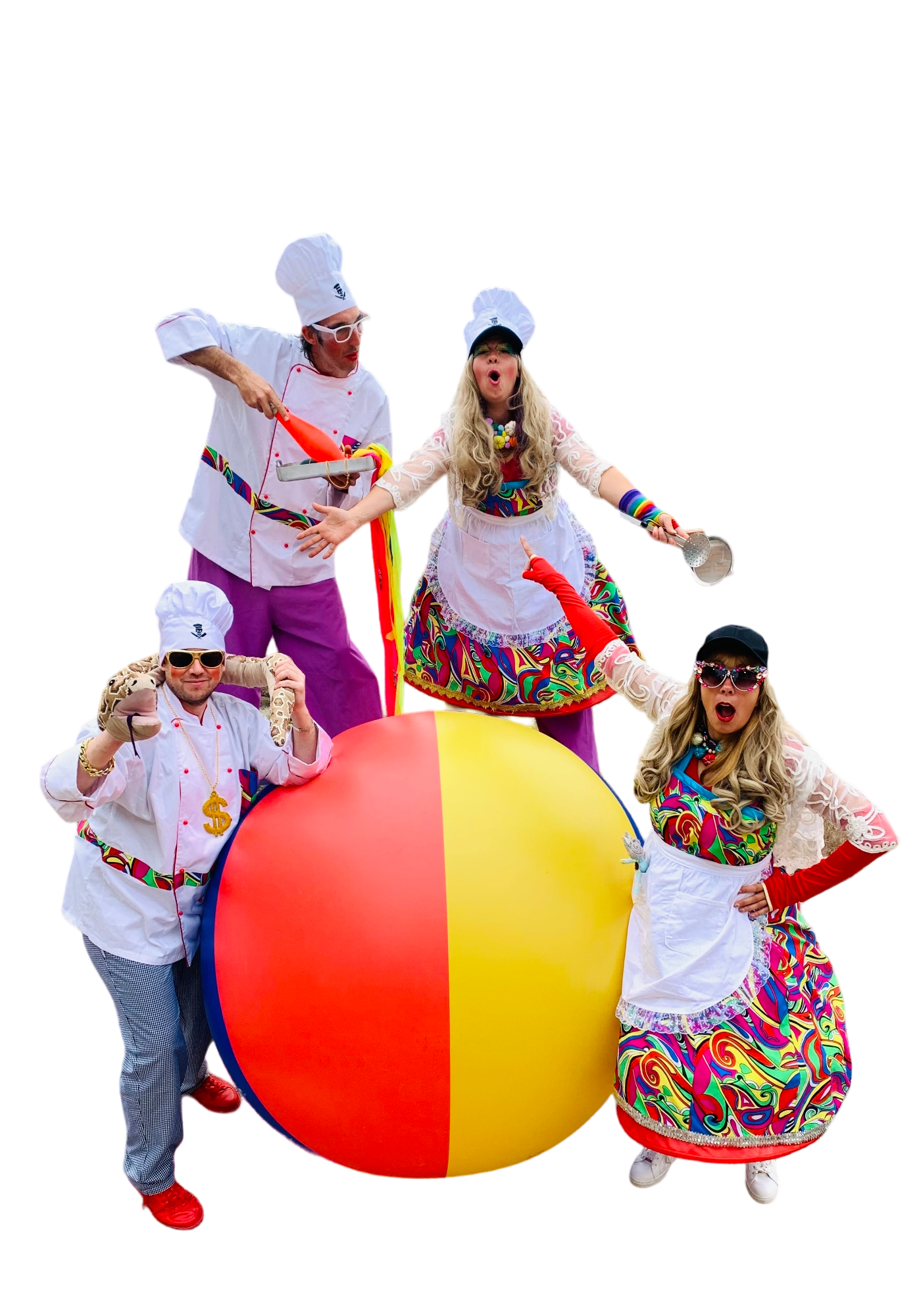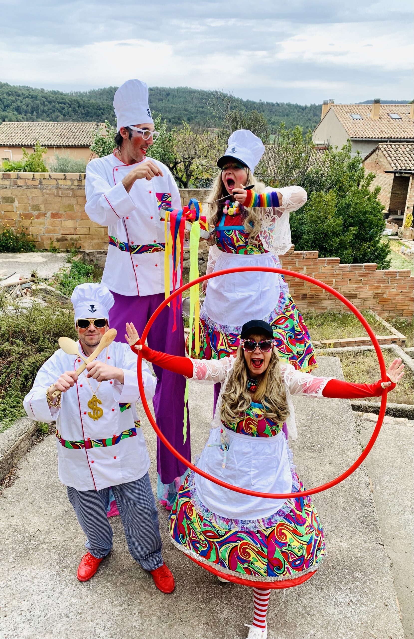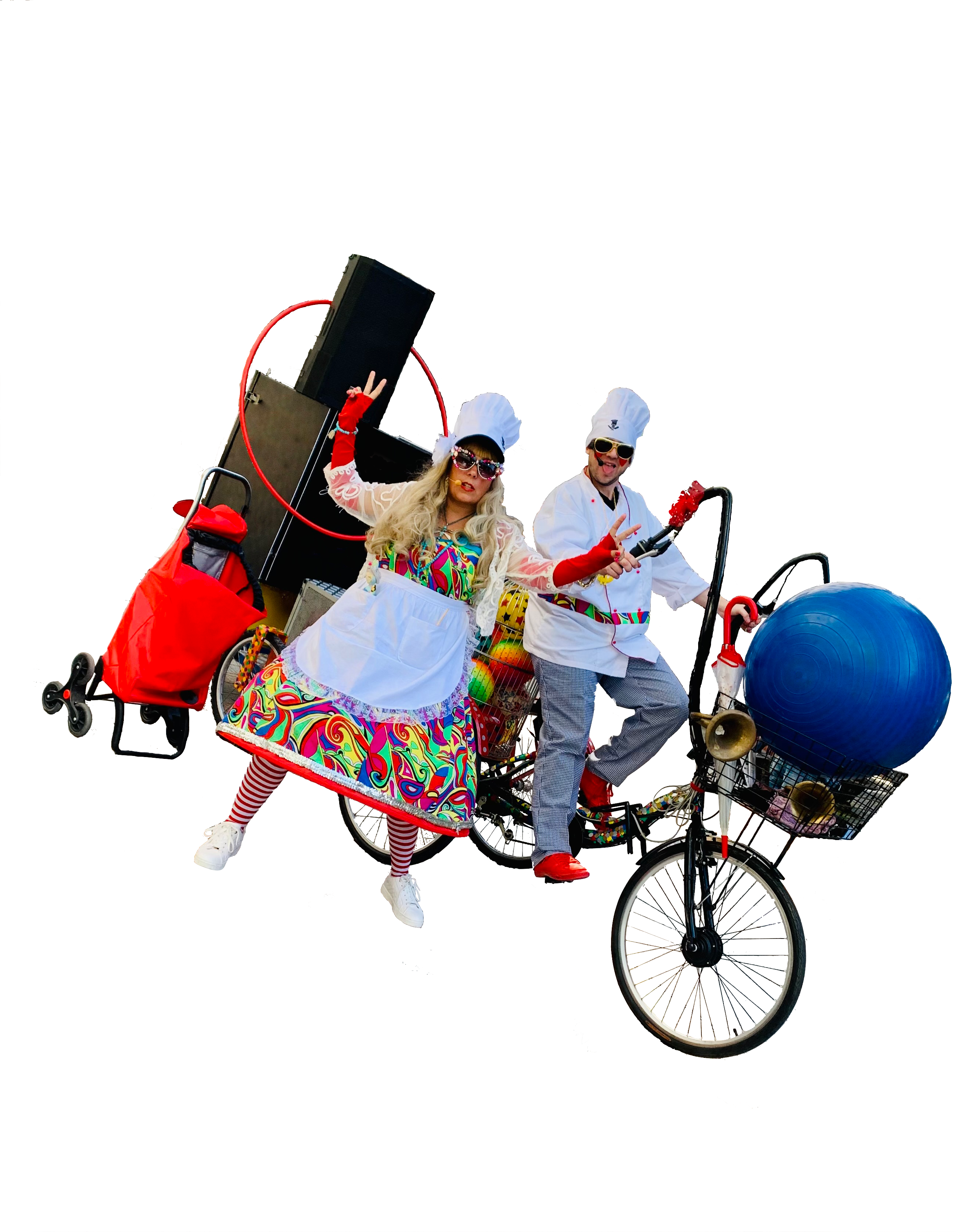 Ous esclafats Espectacle per a públic familiar amb cançons, danses pròpies i jocs participatius amb els chefs més divertits.Cercavila de carrer amb la Súper Bici i molta música amb animació. Necessitats Tècniques:Muntatge: 1:30h.Escenari de 6x4m.Vestuari i WC al costat de l’escenari.1 presa de corrent de 3000w pel so i una altra de 1000W per la llum tot a 220v.Accessibilitat al lloc d’actuació i aparcament.Aigua mineral per als artistes.DURADA: 1h.2, 3 o 4 artistes. 2, 3 o 4actors AnimacióCercavila 1hdurada Descarrega't el full de producte Més informació 51